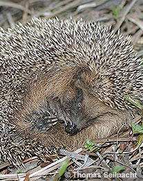 Gefährlich wird es für den Igel, wenn sich Dachs, Baummarder, Fuchs, Steinadler oder Uhu nähern. Geschwächte Igel fallen auch Wildschweinen, wildernden Hunden oder Rabenkrähen und Elstern zum Opfer. Gefahr droht auch durch Parasitenbefall. Flöhe, Zecken, Fliegenmaden und Milben machen den Igeln schwer zu schaffen. Besonders gefährlich ist eine innere Infektion mit Würmern wie dem Lungenhaarwurm, dem Darmhaarwurm oder dem Igelbandwurm. Diese Parasiten fangen sich die Igel ein, wenn sie Schnecken fressen. Findet man einen erkrankten oder geschwächten Igel, sollte man ihn nur mit Handschuhen anfassen und die Hände danach gut waschen. Der Tierarzt kann eine Spritze gegen die Würme verabreichen oder die äußeren Parasiten mit einem Spray bekämpfen.