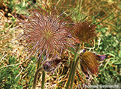 Beschreibung Die Berg-Küchenschelle wird auch Berg-Anemone genannt. Sie hat im Vergleich zur Gemeinen Küchenschelle dunkelviolette Blüten. In der Schweiz findet man sie im Kanton Wallis – zum Beispiel bei Fully – sowie in Graubünden und im Tessin. Die einzeln am Stängel sitzenden, nickenden Blüten erscheinen selten auch rosa oder weißlich. Vor allem der obere Teil der Pflanze ist stark behaart. Die Stängelblätter sind schmal und spitz. Die Grundblätter sind gefiedert, die Abschnitte fiederteilig. Aus den Griffeln entwickelt sich ein kugeliger Fruchtstand mir rötlichen Federschweifen. Küchenschellen enthalten das Gift Protoanemonin, das bei Haut- oder Schleimhautkontakt zur Blasenbildung und zu Verätzungen führt. Beim Verzehr der Pflanze kann es zu schweren Vergiftungserscheinungen kommen. Symptome sind Erbrechen, Magen-Darm-Krämpfe, Störungen am Nervensystem oder eine Nierenentzündung. Alle Küchenschellen-Arten sind auch für Tiere giftig. Hallers Küchenschelle Pulsatilla halleri (All.) Willd. ist in den Alpen viel seltener anzutreffen. Es gibt einige Standorte im Wallis in der Gegend um Zermatt, zum Beispiel am Grünsee. Sie hat hellviolette Blüten. Die Zipfel der grundständigen Blätter sind mit einer Breite von bis zu 5 Millimeter breiter als die der Berg-Küchenschelle. Sehr selten in den Alpen ist die Rote Küchenschelle Pulsatilla rubra Delarbre In der Schweiz ist nur ein Standort bei St. Triphon im Wallis bekannt. Sie ähnelt der Gemeinen Küchenschelle, blüht aber dunkelrot. Fotos zu den Küchenschellen-Arten
