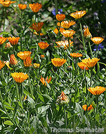 Die ursprüngliche Heimat der Garten-Ringelblume liegt im Mittelmeergebiet. Sie kommt in Europa, Westasien, Ägypten und in den USA vereinzelt verwildert vor. Sie wird dort in den Gärten intensiv kultiviert. Die Garten-Ringelbume enthält verschiedene Inhaltsstoffe zum Beispiel Triterpensaponine und Triterpenalkohole (Faradiol), sowie ätherische Öle (Sesquiterpene), Cumarine, Carotinoide, Polysaccharide und Flavonoide. Die ätherischen Öle und die Flavonoide der Droge wirken bakterien-, virus- und pilztötend. Aufgrund der entzündungshemmenden Wirkung lassen sich Ringelblumentinkturen, Öle oder Salben zur Wundheilung einsetzen. Besonders schlecht heilende Wunden, aber auch bei Verletzungen oder Entzündungen an der Haut (Ekzeme, Nagelfalz, Verbrennungen) und bei Entzündungen an den Schleimhäuten ist eine gute Heilwirkung zu erwarten.