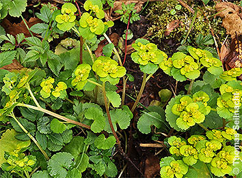Das Wechselblättrige Milzkraut kommt in seinem Habitat häufig vor, der Bestand ist nicht in Gefahr. Das Feuchtigkeit liebende Milzkraut sucht gerne die Gesellschaft der Weißen Pestwurz.