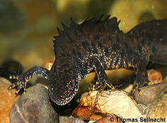 Bild vergrößern! Kammmolch Triturus christatus, bis 19 cm