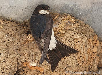 Die Mehlschwalbe besitzt eine relativ kurze Schwanzgabel, und sie ist etwas kleiner als die