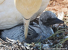 zwölf Wochen ist der junge Basstölpel mehr als vier Kilogramm